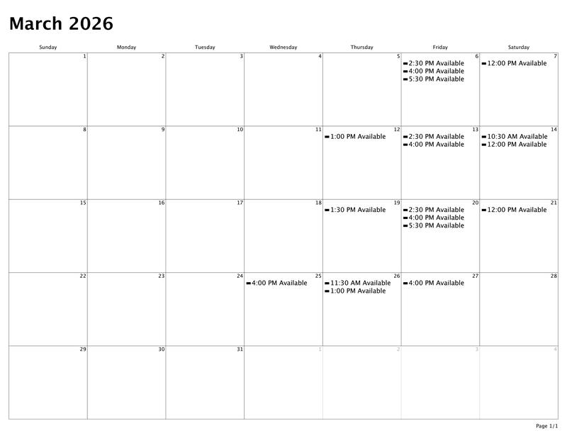 Sunday Monday Tuesday Wednesday Thursday Friday Saturday