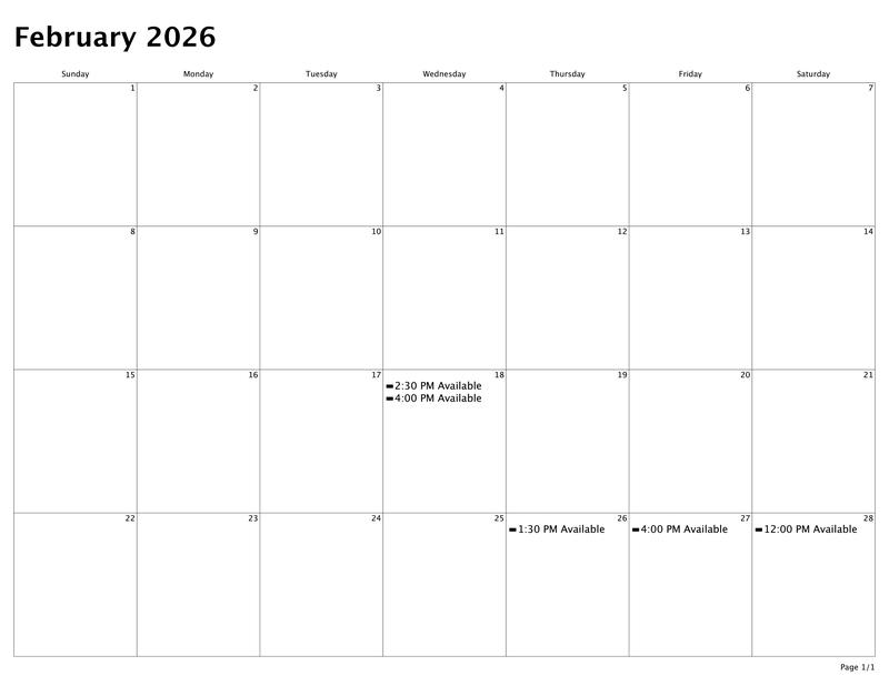 Calendar of Availability for Feb & Mar